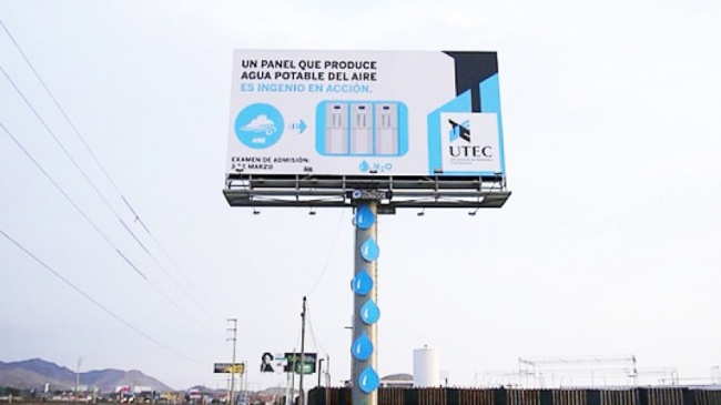 La universidad UTEC desarrolló su propio cartel publicitario que literalmente hace agua del aire