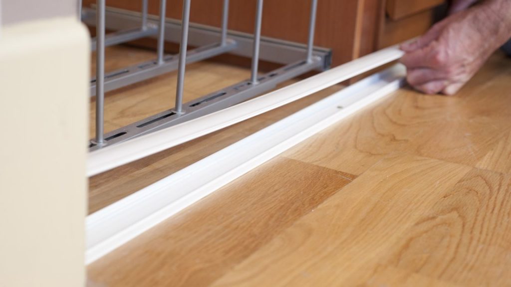 Encajamos la tapa embellecedora en la guía inferior, presionando ligeramente con la mano. Esta pieza tapará los tornillos y evitará que el carril se llene de polvo y suciedad.